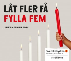 Svenska kyrkans julinsamling börjar första advent och pågår fram till trettondedag jul. Temat för årets kampanj är ”Låt fler få fylla fem”.
